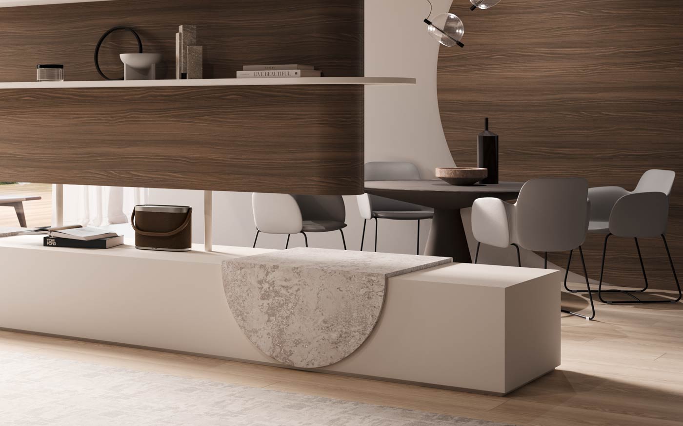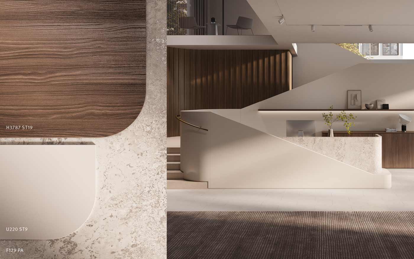 U220 ST9 Nježna bež je moderna i privlačna alternativa klasičnoj bijeloj boji. U interijer unosi ugodnu i toplu atmosferu, a istovremeno izgleda vrlo suvremeno. Zahvaljujući svojoj neutralnosti, lako se uklapa u sve stilove, od strogog minimalizma do bezvremenske klasike. Izvrsno funkcionira u monokromatskim kombinacijama, ali se jednako dobro slaže s prirodnim drvom, autentičnim kamenom i prigušenim uni tonovima. Za poseban doživljaj pod prstima zaslužna je struktura ST9 Smoothtouch Matt, koja ovoj nijansi daje baršunastu taktilnost i dodatno naglašava njezin umjeren karakter.